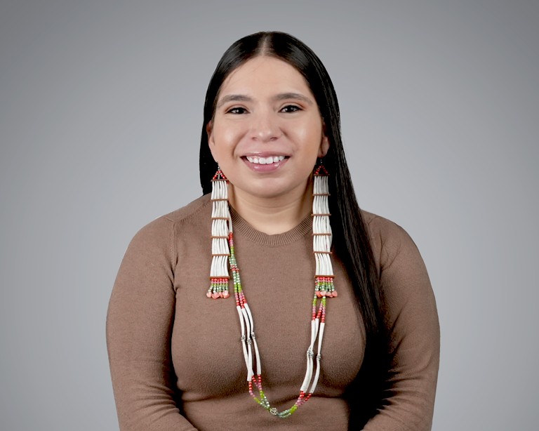 Outside of work and school, Jasmine is focused on learning Aanishinaabemowin (traditional language of the three fires Ojibwe, Odawa, and Bodéwadmi) any chance she gets. She also enjoys spending time with family, attending ceremonies, powwows, roundances, and creating beadwork alongside contemporary ribbonwear/regalia.